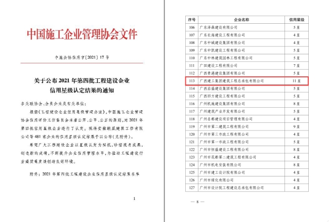 克日,中国施工企业治理协会信用评价...